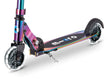 Light up LED wheels, steers like a bike, Adjustable handlebar, Large wheels, Wide chopper style handlebars, Low stable deck, Foldable.